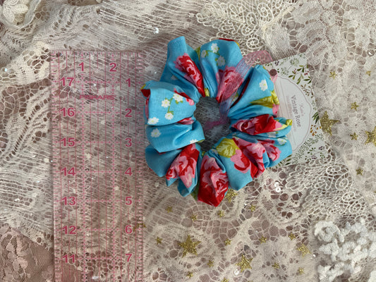 Blue Retro Flower Cotton Around The Bun Scrunchie