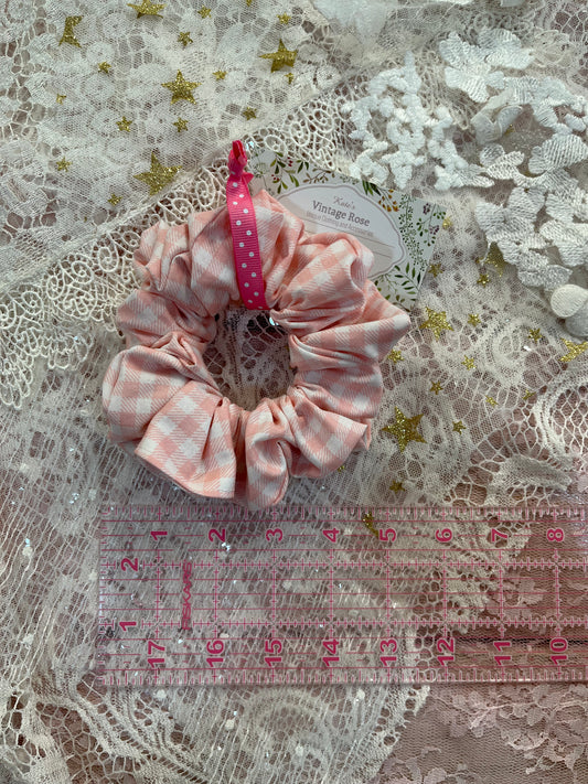 Pink Gingham Cotton Around The Bun Scrunchie